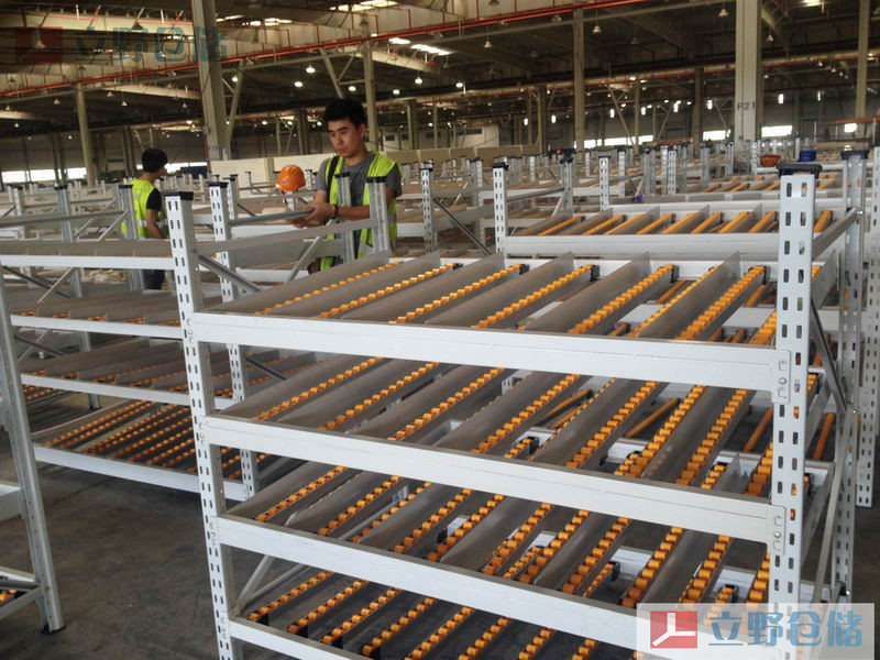 流利條貨架是一種先進(jìn)先出式貨架,貨物從貨架的背后放入,前面取出。它一般同標(biāo)準(zhǔn)塑料周轉(zhuǎn)箱或紙箱配合使用,空間利用率高。廣泛應(yīng)用于倉(cāng)庫(kù)、工廠(chǎng)裝配車(chē)間及各種配送中心。貨物通常為紙包裝或?qū)⒇浳锓庞谒芰现苻D(zhuǎn)箱內(nèi),利用其自重實(shí)現(xiàn)貨物的流動(dòng)和先進(jìn)先出。